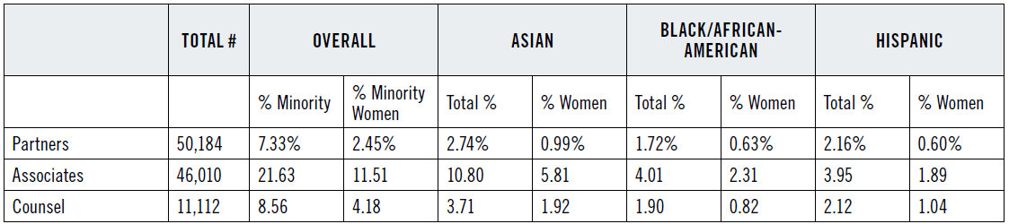 Minorities continue to be woefully underrepresented in major US law firms, particularly at the equity partner level. Considering the pivotal role that laws have played in making the United States a more integrated country (the Civil Rights Act of 1964, for example), it seems unfathomable that the legal profession would be in such a crisis when it comes to fully embracing minority lawyers, and minimally reflecting the population in terms of race, gender and all other categories. But this is the state we are in, and it needs to be addressed immediately.