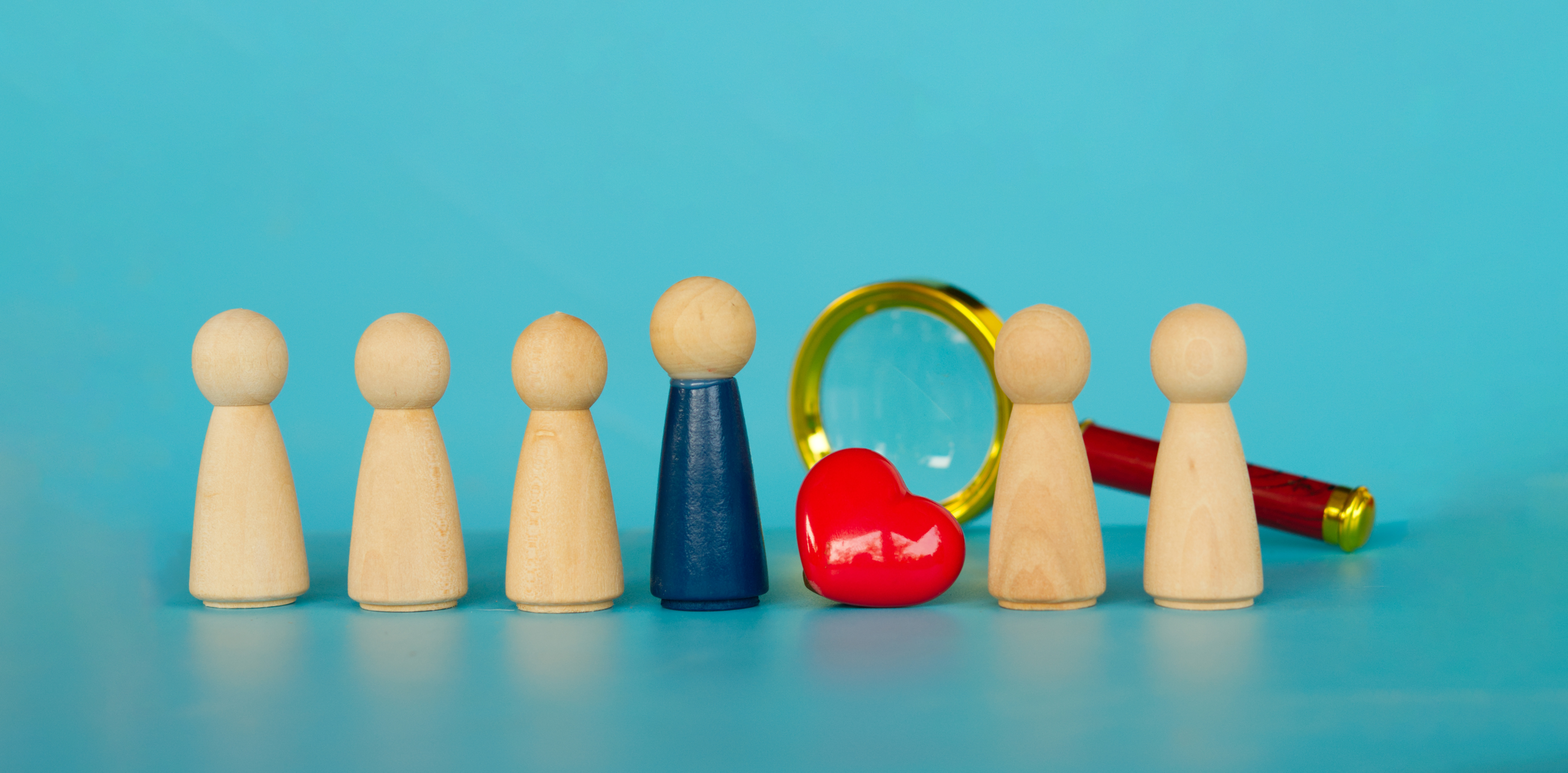 Wooden cubes with percent signs on them, magnifying glass in the background