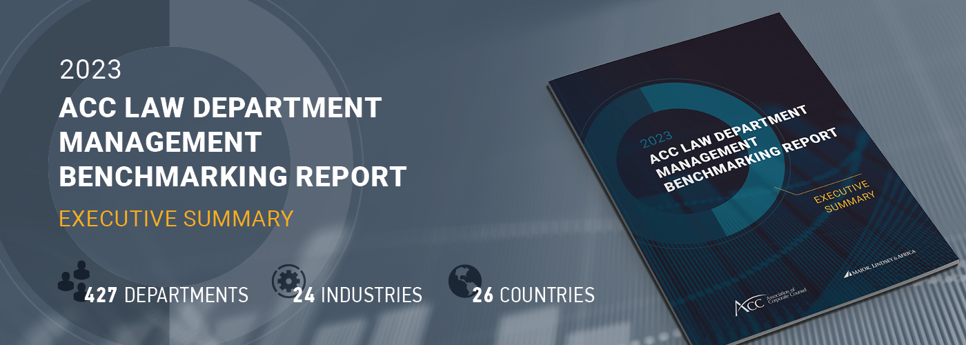Although the survey results reveal many interesting findings, the primary purpose of this data collection is to enable ACC members to benchmark their key performance indicators with a broader pool of legal departments. This is why we offer a full benchmarking report and the ability to receive a custom benchmarking report.