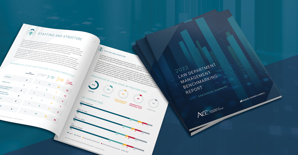 Numerous trends and insights on legal operations in more than 400 legal departments were revealed in the third edition of the annual ACC Law Department Management Benchmarking Report released with Major, Lindsey & Africa.